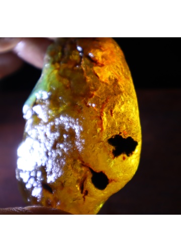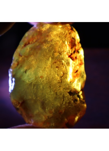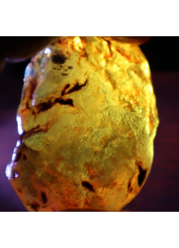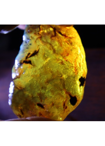 A: No. It appears under UV light or sunlight; in regular lighting, amber may look yellow or brown.